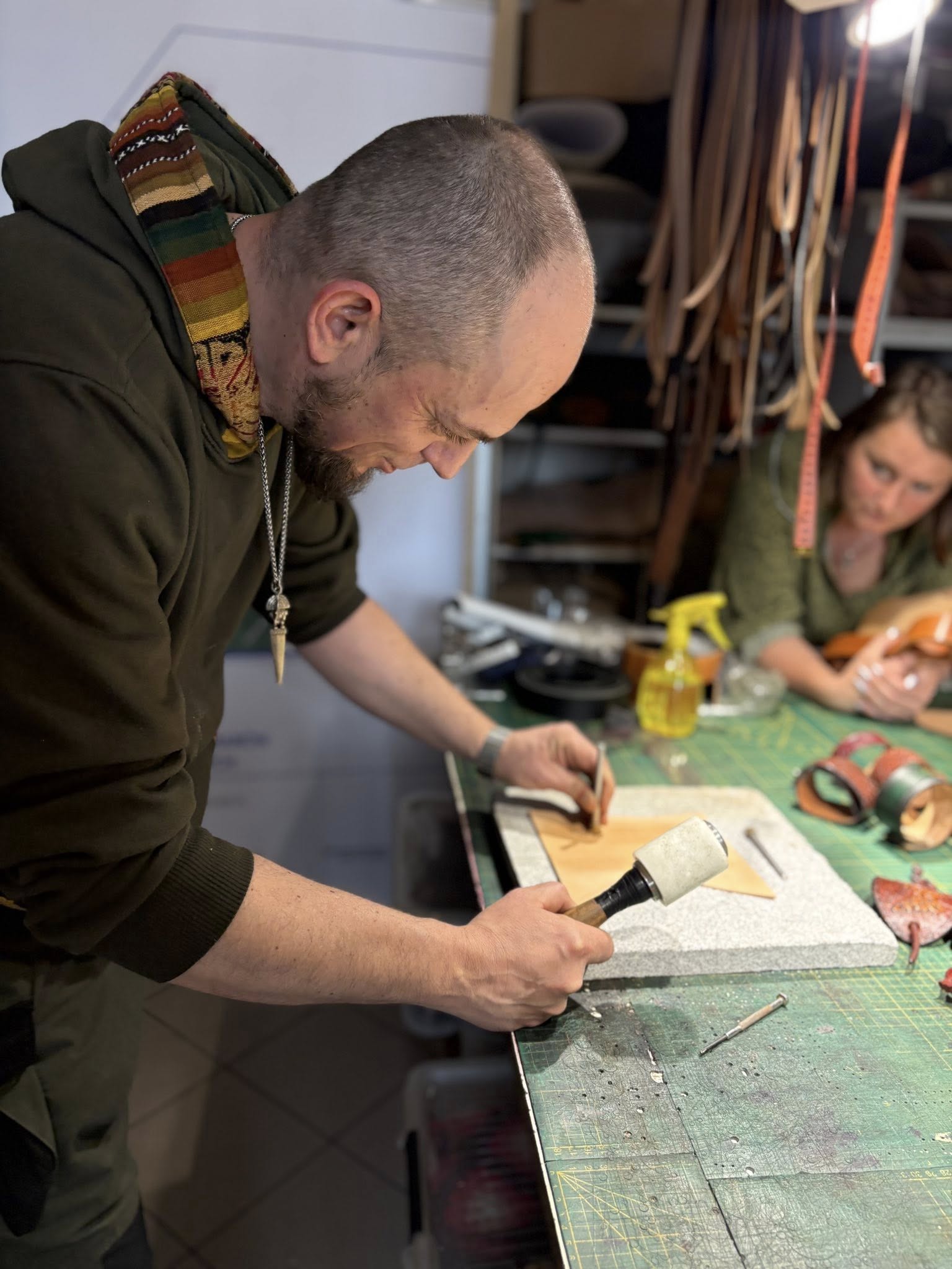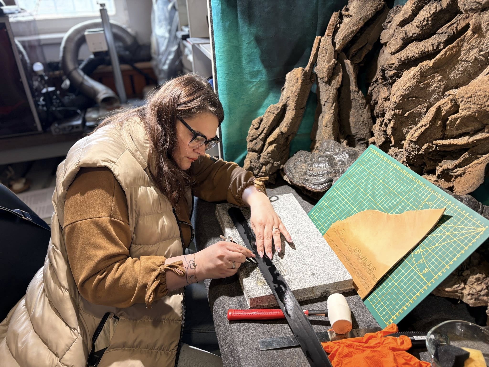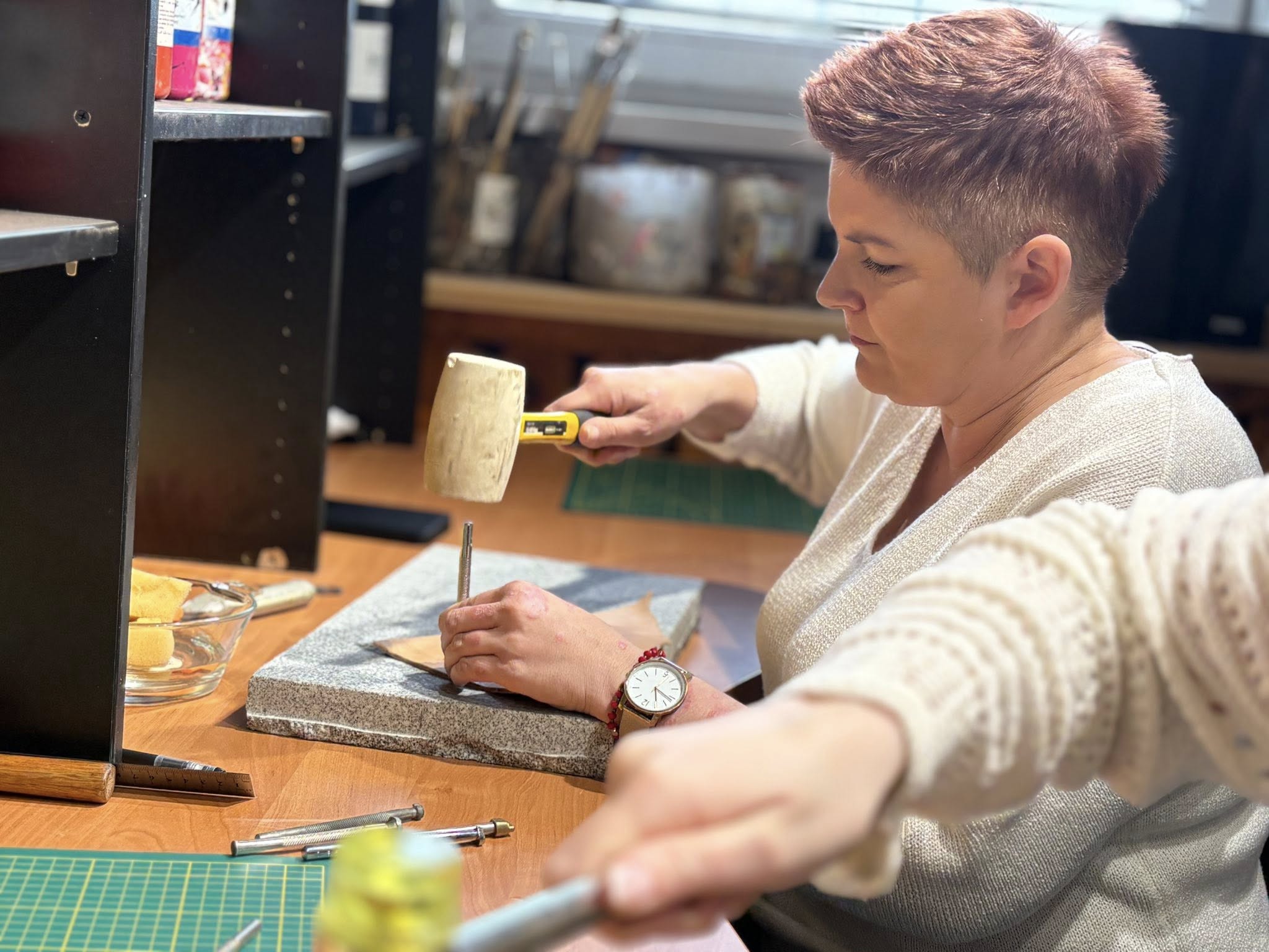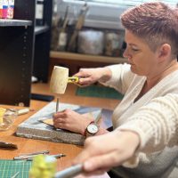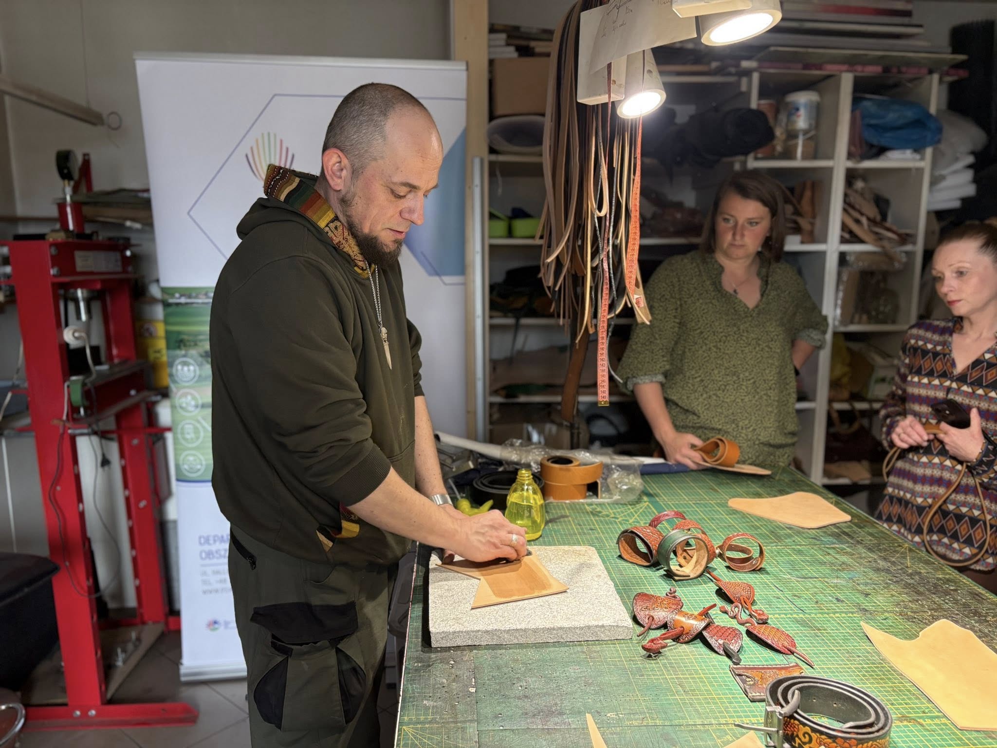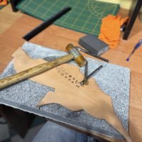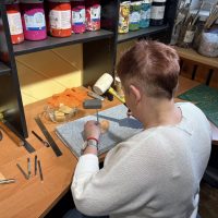 Spotkanie poświęcone pracy ze skórą oraz tworzeniu biżuterii odbyło się na terenie Stowarzyszenia Kraina św. Anny, w pracowni pana Mariusza Kubackiego – Pracownia Mithril Crafts w Zdzieszowicach. Uczestnicy mieli okazję samodzielnie wykonać własne wyroby, zdobywając przy tym podstawową wiedzę i umiejętności z zakresu obróbki skóry oraz projektowania biżuterii.