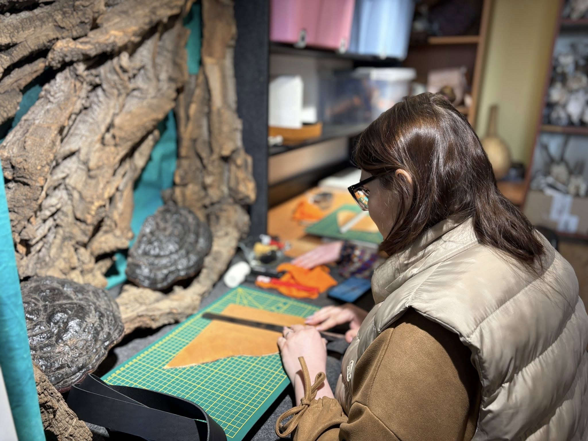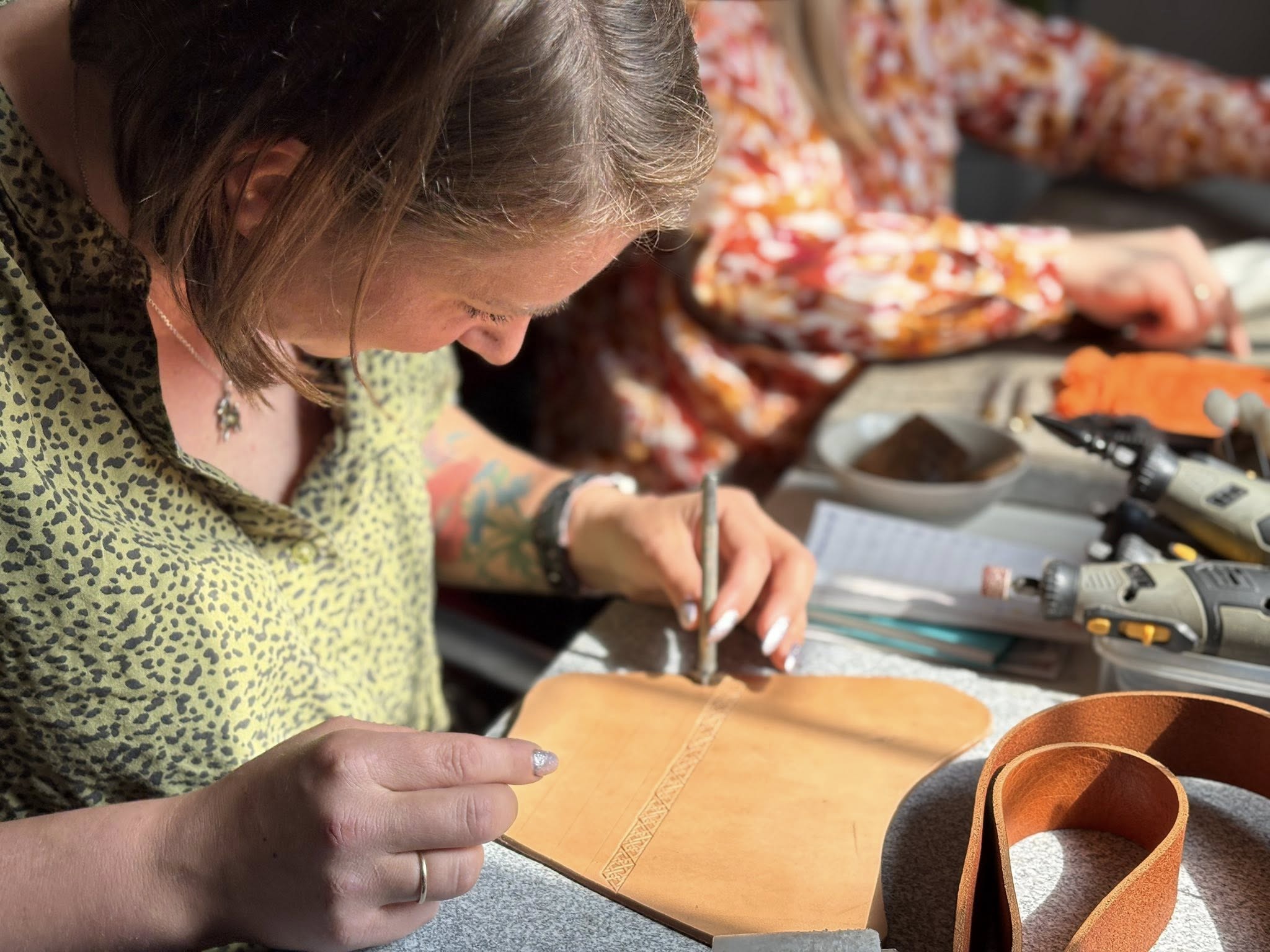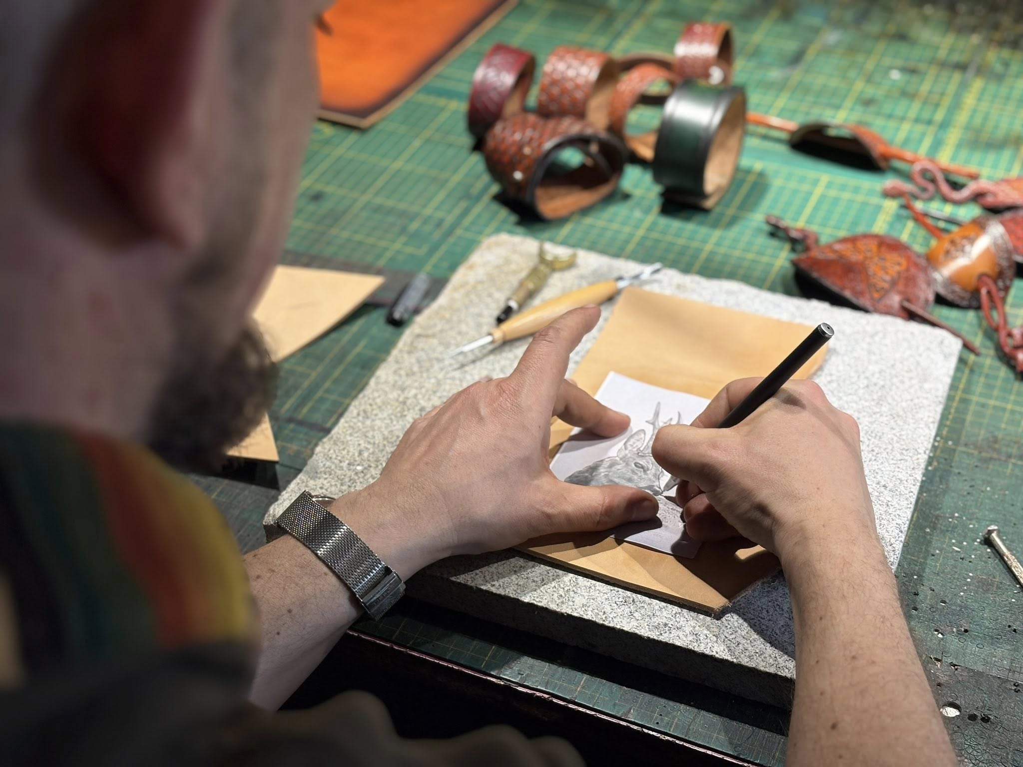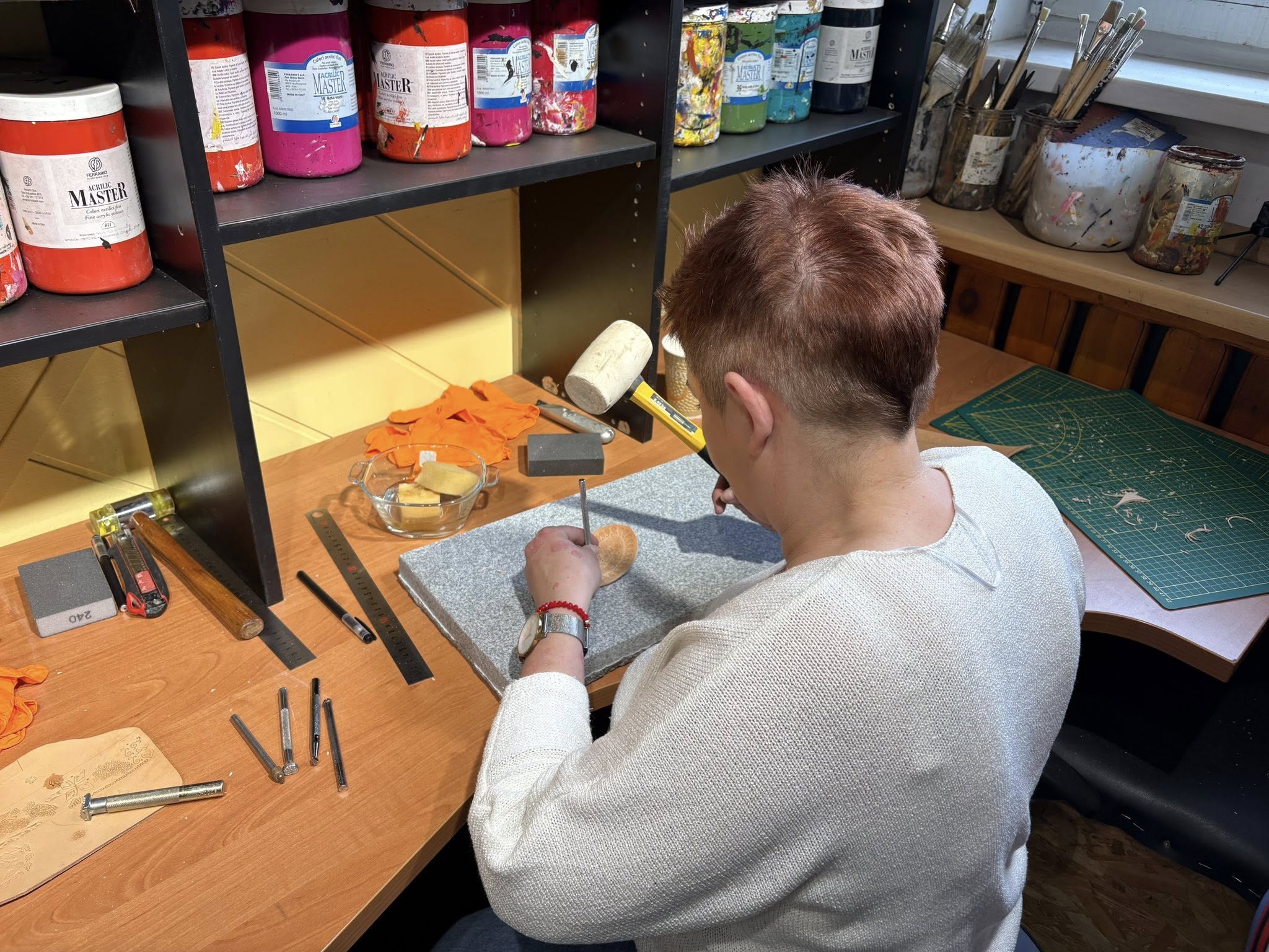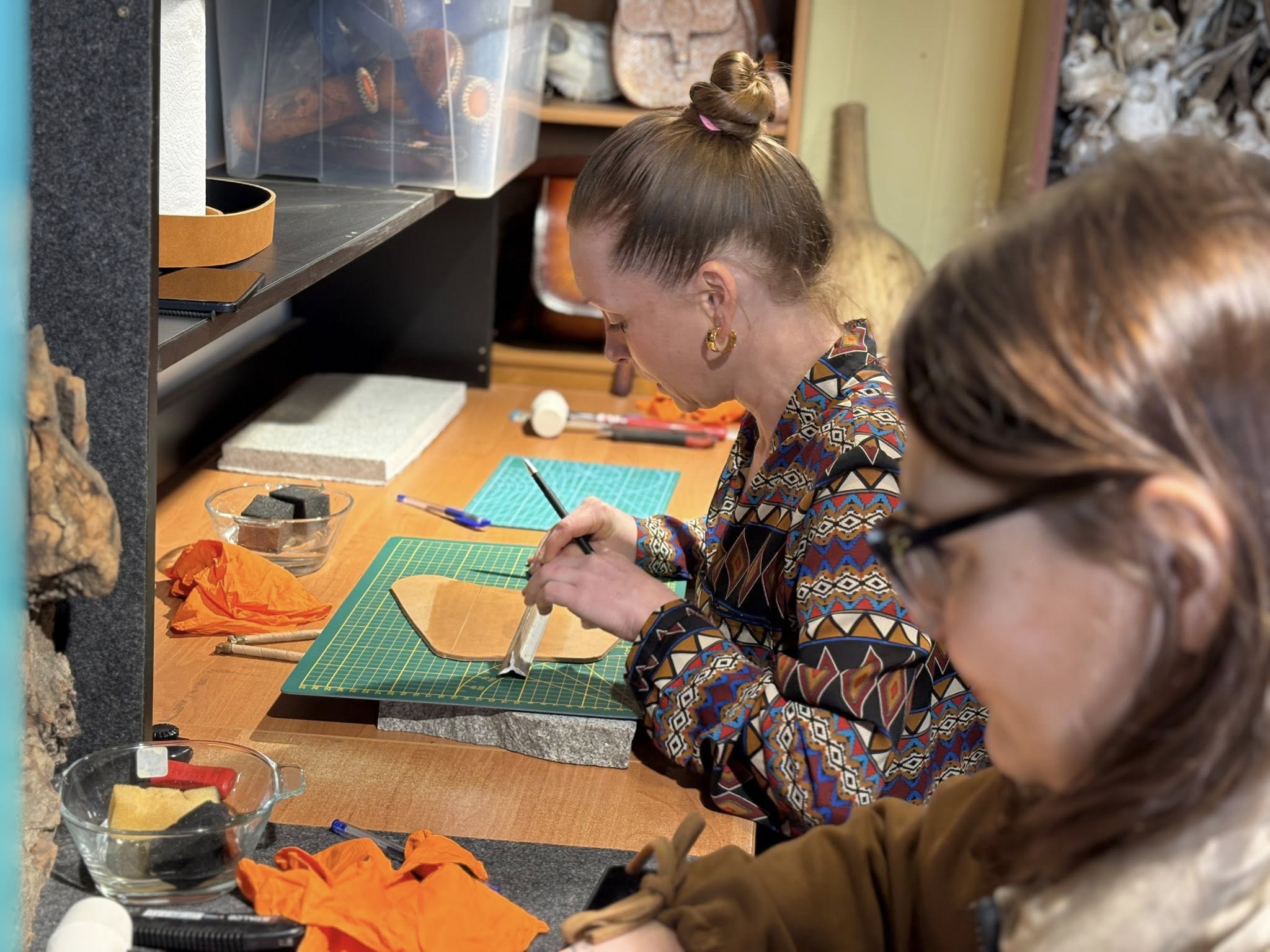 Spotkanie poświęcone pracy ze skórą oraz tworzeniu biżuterii odbyło się na terenie Stowarzyszenia Kraina św. Anny, w pracowni pana Mariusza Kubackiego – Pracownia Mithril Crafts w Zdzieszowicach. Uczestnicy mieli okazję samodzielnie wykonać własne wyroby, zdobywając przy tym podstawową wiedzę i umiejętności z zakresu obróbki skóry oraz projektowania biżuterii.